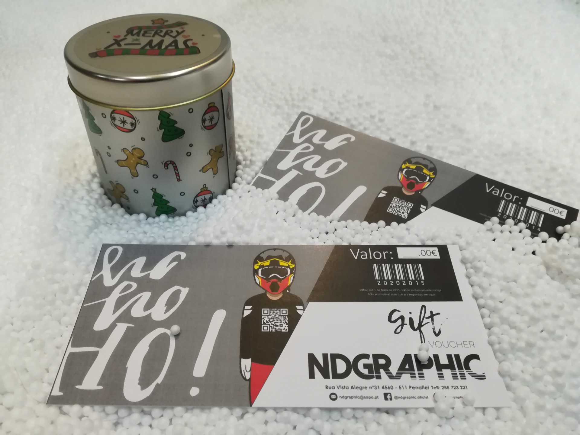 Gift Natal - Voucher 25,00 € Desconto de %. Os GIFTS NATAL NDGRAPHIC, são a melhor proposta para surpreender quem mais gosta . VALOR 25.00€ 50.00€ 75.00€ 100.00€ 150.00€ Outro Valor Quantidade Comprar Contactar Partilhar Descrição Os GIFTS NATAL NDGRAPHIC, são a melhor proposta para surpreender quem mais gosta. Se está com dificuldade em encontrar a prenda certa, opte pelos nossos gifts e ofereça algo unico e personalizavel! Esta lata contém um cheque-prenda, com valor atribuido por si, válido até 31 de Março de 2025. Também poderá gostar de