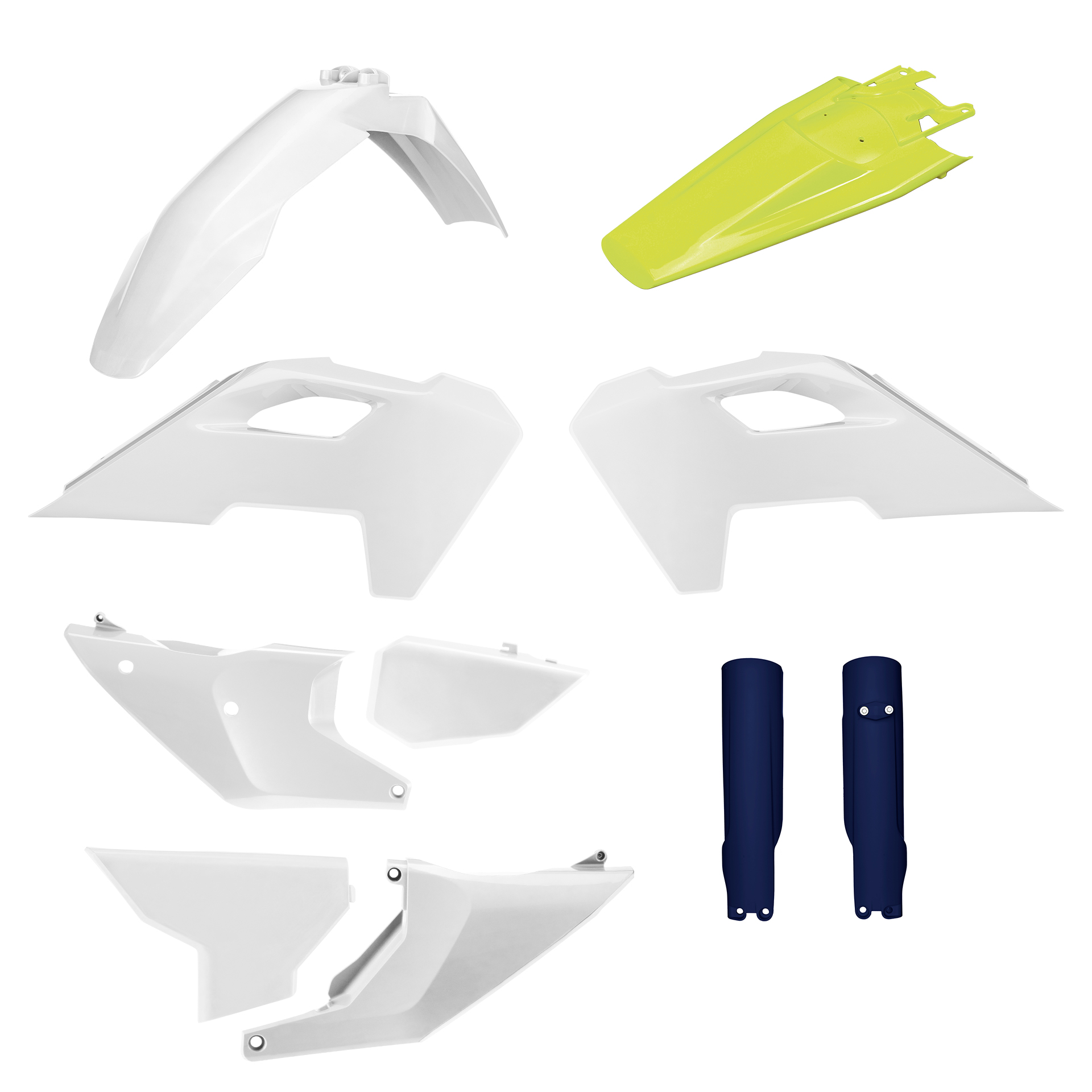O KIT INCLUI: Guarda-lamas da frente e de trás, tampas de depósito/radiador, tampas laterais traseiras; frontal.