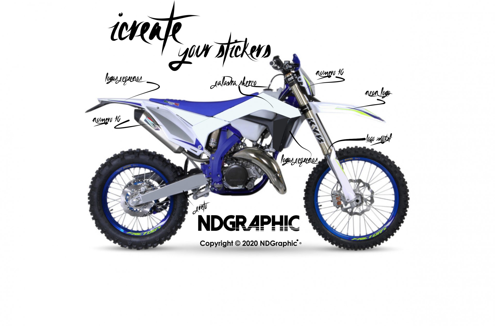 Na NDGraphic, criamos o seu kit gráfico ao seu gosto, totalmente personalizável e adaptável a sua Sherco.